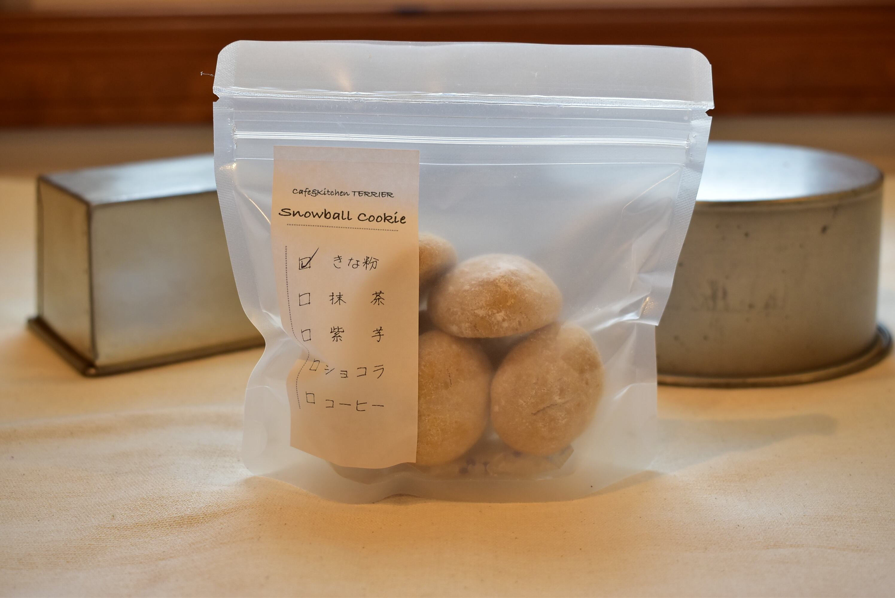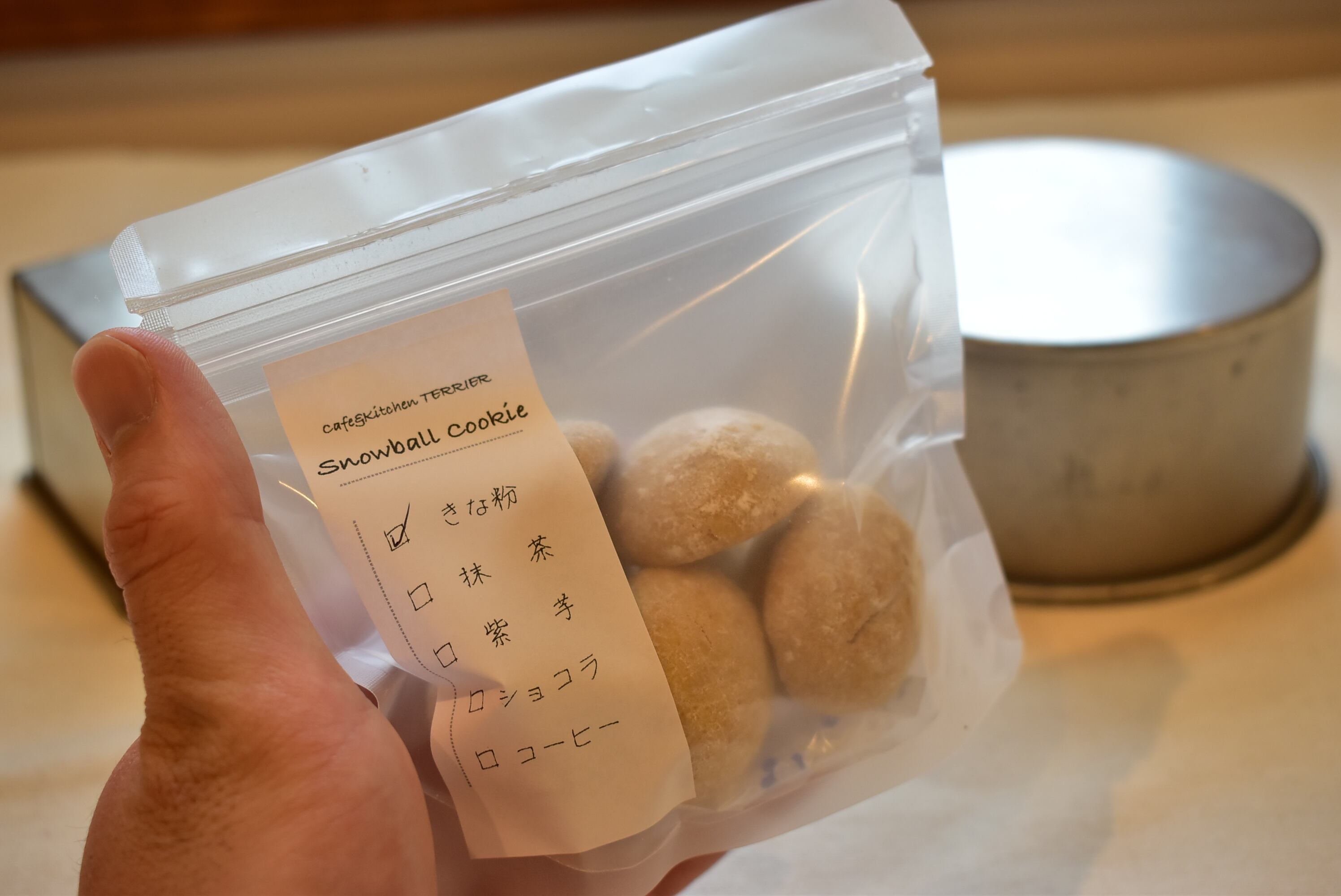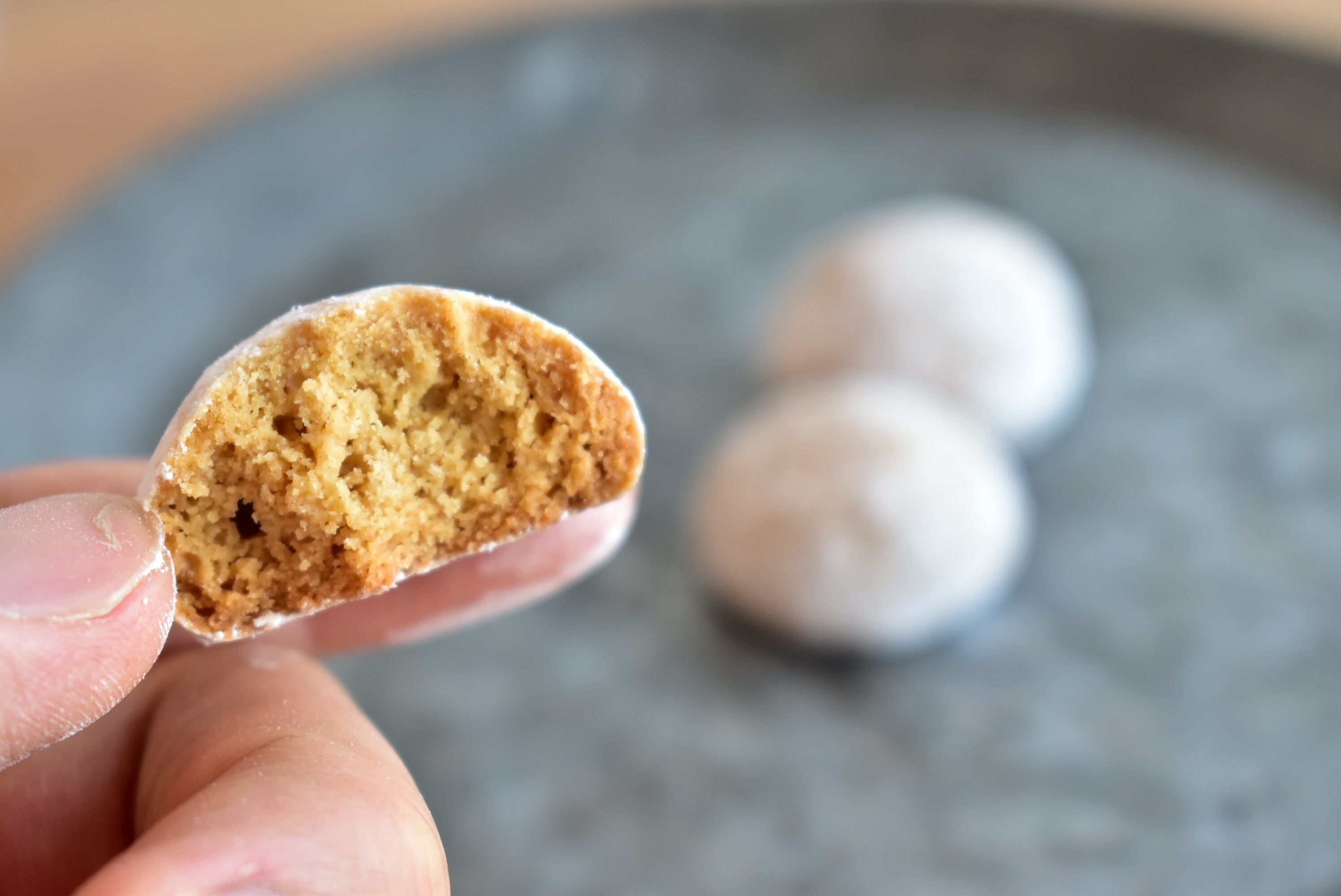 きな粉を練り込んだ、素朴なあじわいのスノーボールクッキーです