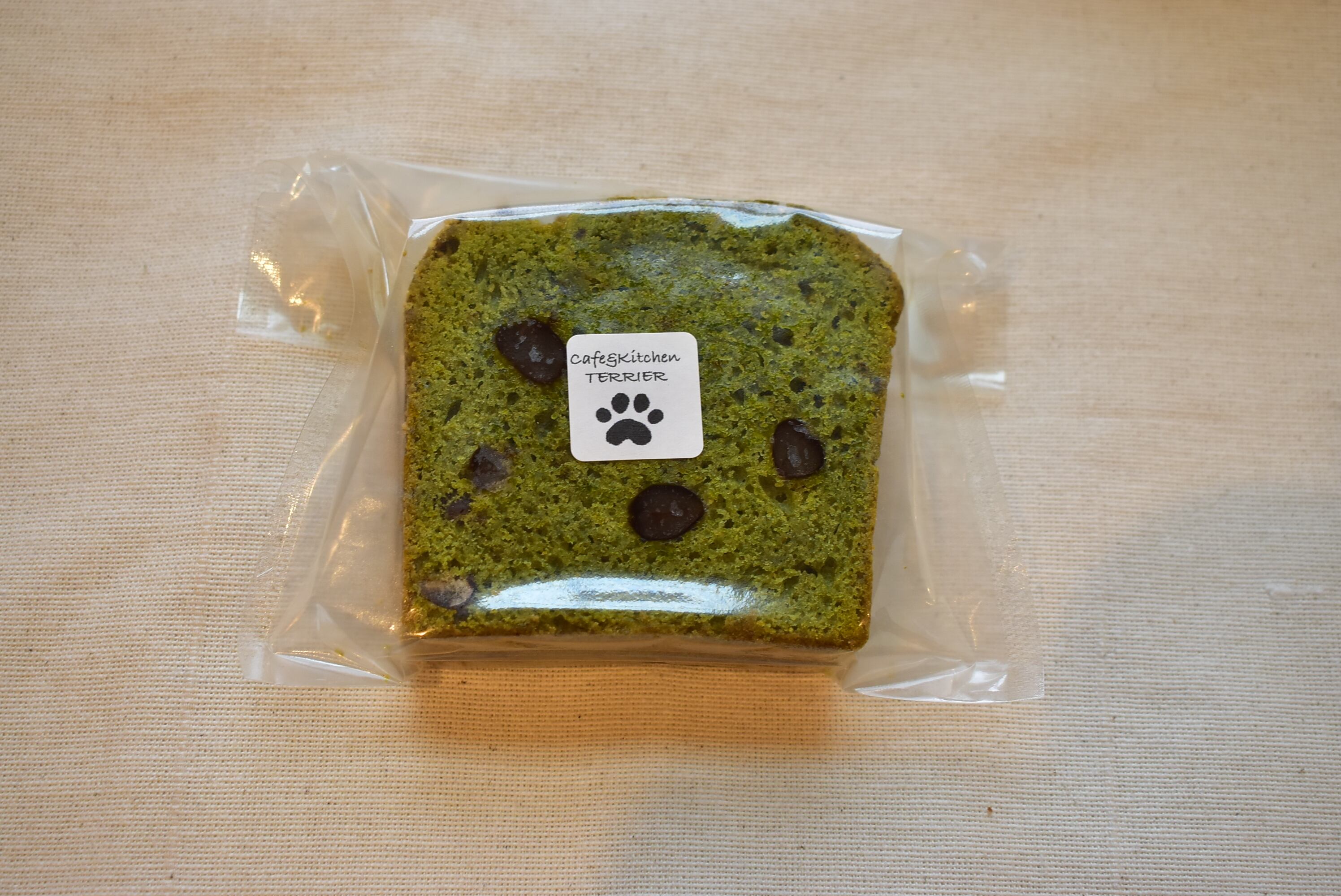 ほろ苦い抹茶生地に、大納言小豆を練り込みました